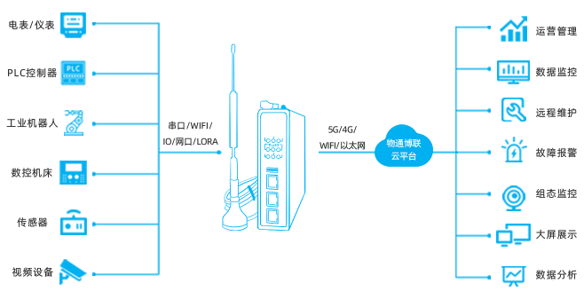采集功能:内嵌工控协议,支持采集PLCCNC机床机械手臂注塑机、仪器仪表、环保及水文、能源等设备数据