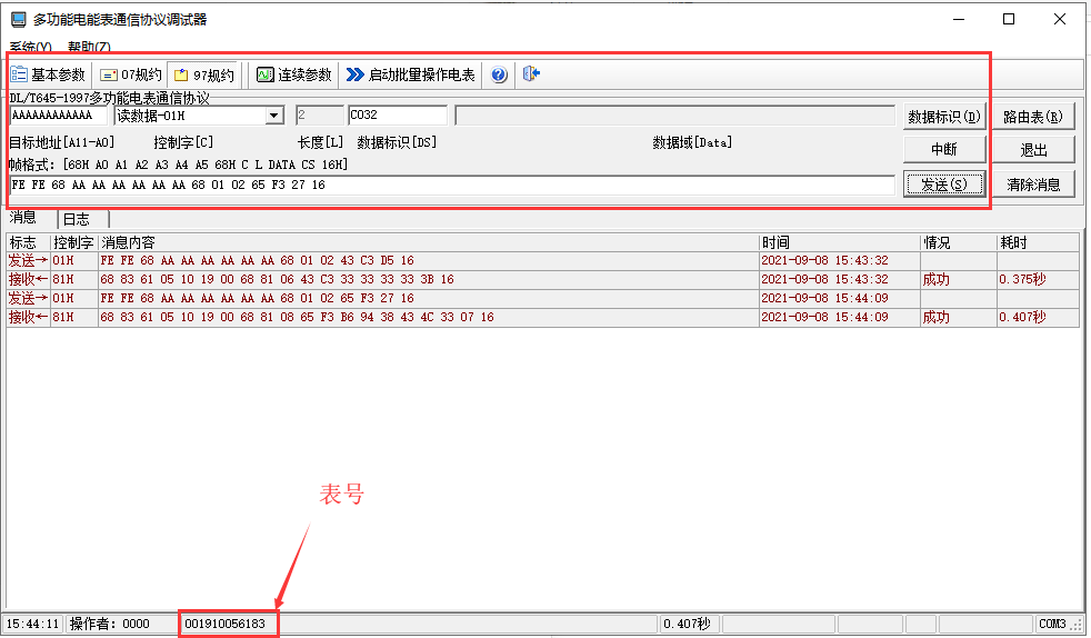一般情况下,表号一般在电表上可见,如电表上没有表号一般可找对应厂家索要软件获取。 以下是某厂家给予的软件示例: